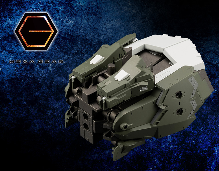 ブースターパック第10弾は多数のユニットで構成された大型の複合ブースターです。成型色はシリーズ内で共通カラーの多いヘキサギアダークグリーンとなっており、ブースターパック007から010を使用する事で大型砲戦ヘキサギア「ブロッケード・アイビー」のダークグリーン仕様を組み立てる事が出来ます。