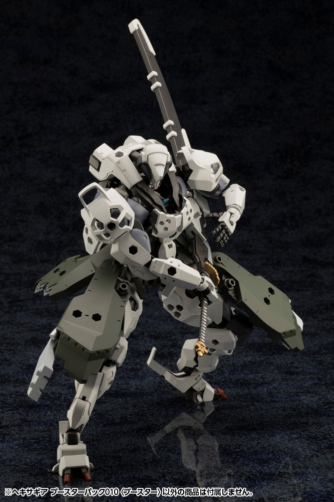■世代を問わず装備可能な大型の複合ブースターです。内部に多数の可動機構を持ち、装甲に覆われた収納状態から推進器を露出した展開状態へ変形可能です。収納状態は固定用のピンでしっかりと固定することが出来ます。