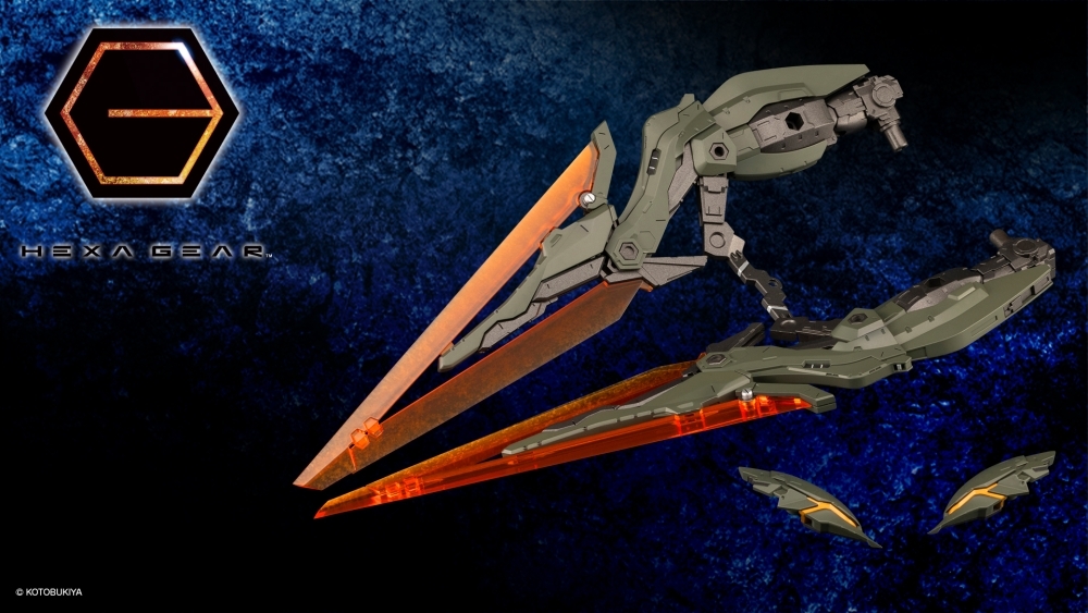 ■2種類付属するグリップユニットを取り付ける事で剣、トンファーとしてヘキサギアに装備可能な他、ブレード部分を取り外す事で脚部パーツやウイング等としても使用可能です。