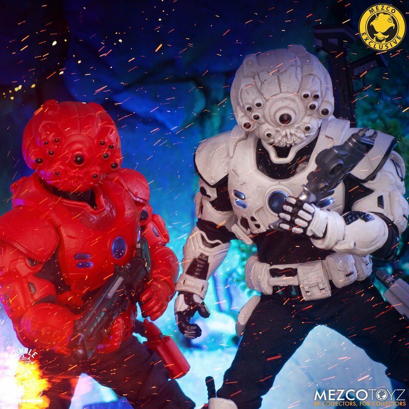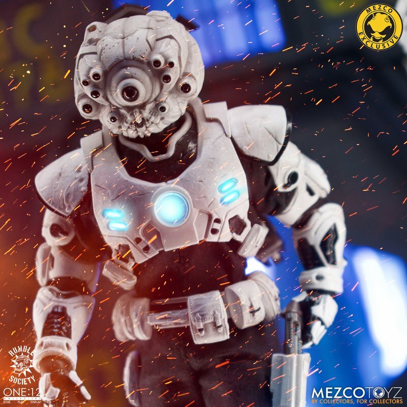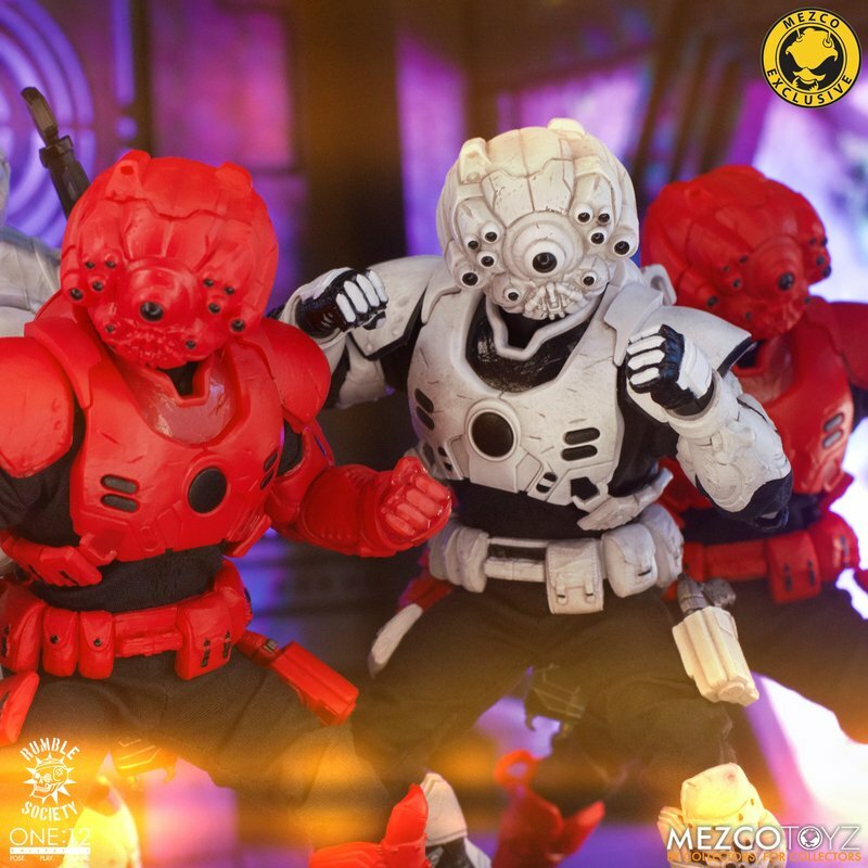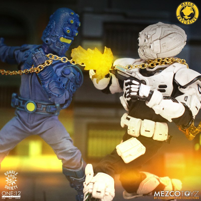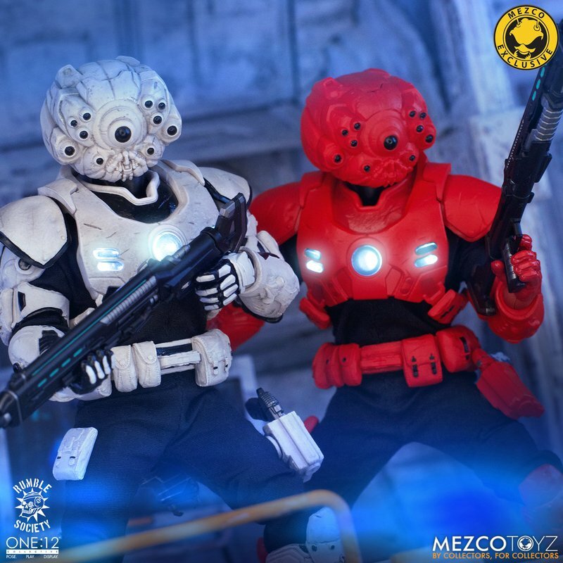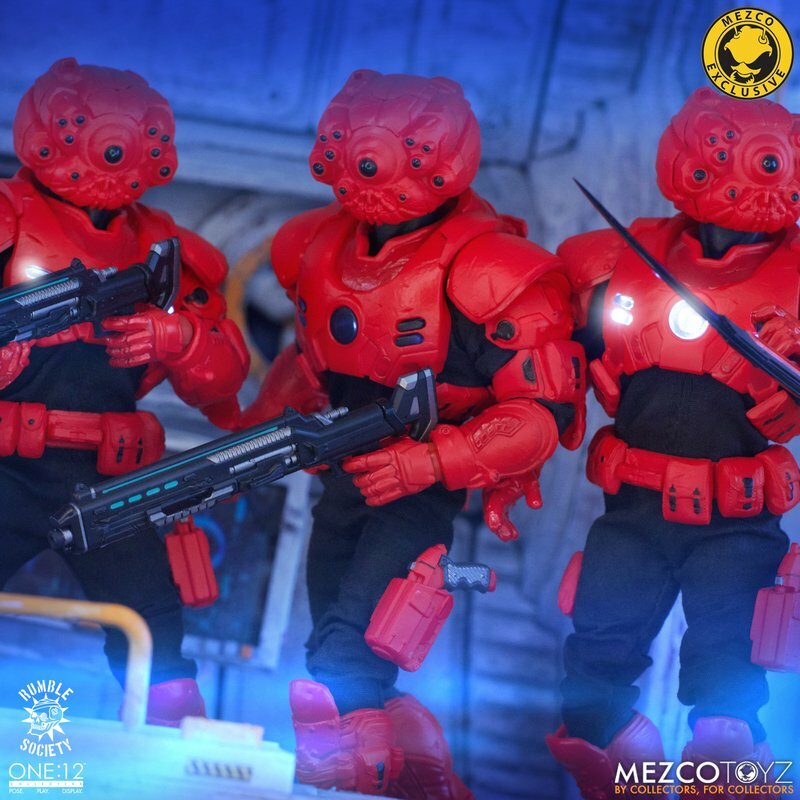The One:12 Collective Assault on Krig-13: Squadron Army Builder Set includes two Krig soldiers, one Blood Force and one Pale Driver. The Krig come wearing standard-issue armor which features a light up function in the chest rig. Their armor is built for battle, consisting of a duty belt, thigh holster for their Side Blaster, weapon bracket on their back, and terrain boots. The SM9 Integrated Unit fits securely over their head portrait with a light-up tech-eye. The removable Field Poncho with integrated posing wire can be customized with the included sticker sheet.