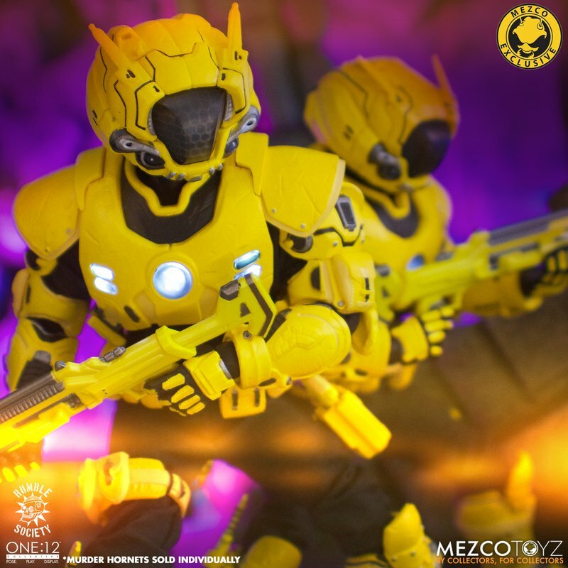 The Murder Hornets are unwavering and equipped with upgraded Krig weaponry including an energy shield that attaches to their gauntlets and can be stored on the back of their armor, a handgun with removable magazines, MF112 Proton Cannon, Combat Concussives, multiple weapon FX, and more.