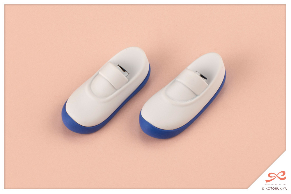 白と青の2色で成型されており、塗装しなくても定番配色の上履きとして楽しめます。